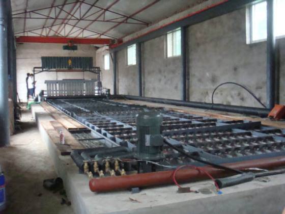 制冰池用于盛裝鹽水溶液、蒸發(fā)器及冰桶等,一般6~8mm厚的鋼板焊接而成。制冰池中焊有隔板,將制冰池分成放置蒸發(fā)器和制冰桶兩部分。制冰間應(yīng)靠近機(jī)房,通風(fēng)采光要好,避免陽光照射在制冰池上。